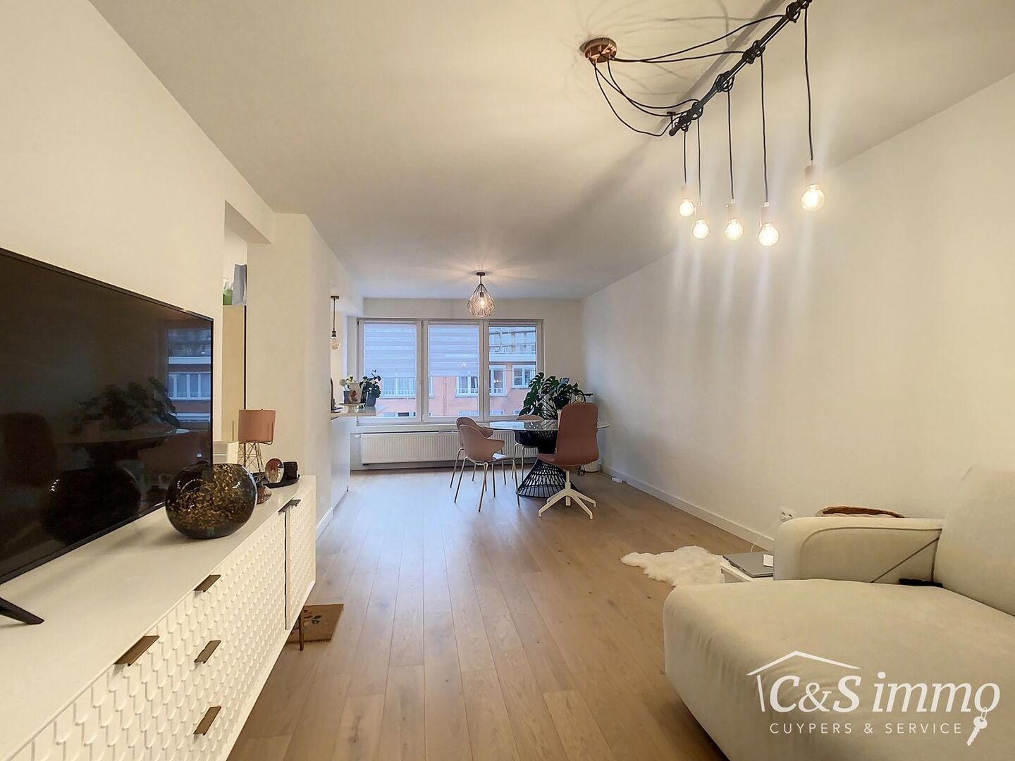 Appartement gelegen op de tweede verdieping op wandelafstand van het gemeentepark Bremweide. Inkomhal met apart toilet. Ruime woonkamer(ca. 31m²) met aansluitend de halfopen keuken met eiland. De keuken (ca.12m²) is voorzien van een kookplaat, dampkap, vaatwasmachine, koelkast en oven. Ingerichte badkamer met douche en dubbele lavabo. 2 Slaapkamers aan de achterzijde (ca. 18-12 m²) waarvan 1 ingericht is als dressing. Aansluiting wasmachine voorzien. Privatieve meters. CV op gas. Privatieve kelderberging. Geen gemeenschappelijke kosten. Beschikbaar vanaf 1 april.
