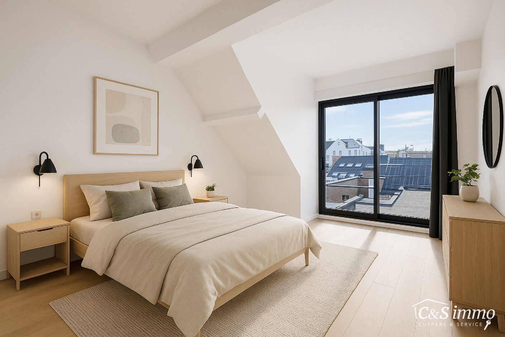 Tip top afgewerkt duplex appartement met 2 slaapkamers. Dit appartement biedt een perfecte balans tussen comfort en stijl, gelegen in de levendige en vernieuwende wijk Stuivenberg. Bij binnenkomst inkomhal met een apart toilet. De lichtrijke leefruimte op parket van ca. 29m² aan de straatzijde biedt een sfeervolle omgeving om te ontspannen. Volledig uitgeruste luxueuze leefkeuken (ca.13m²). Aparte berging en apart toilet. De moderne ingerichte douchekamer is voorzien van een ruime douche en stijlvol badkamermeubel.