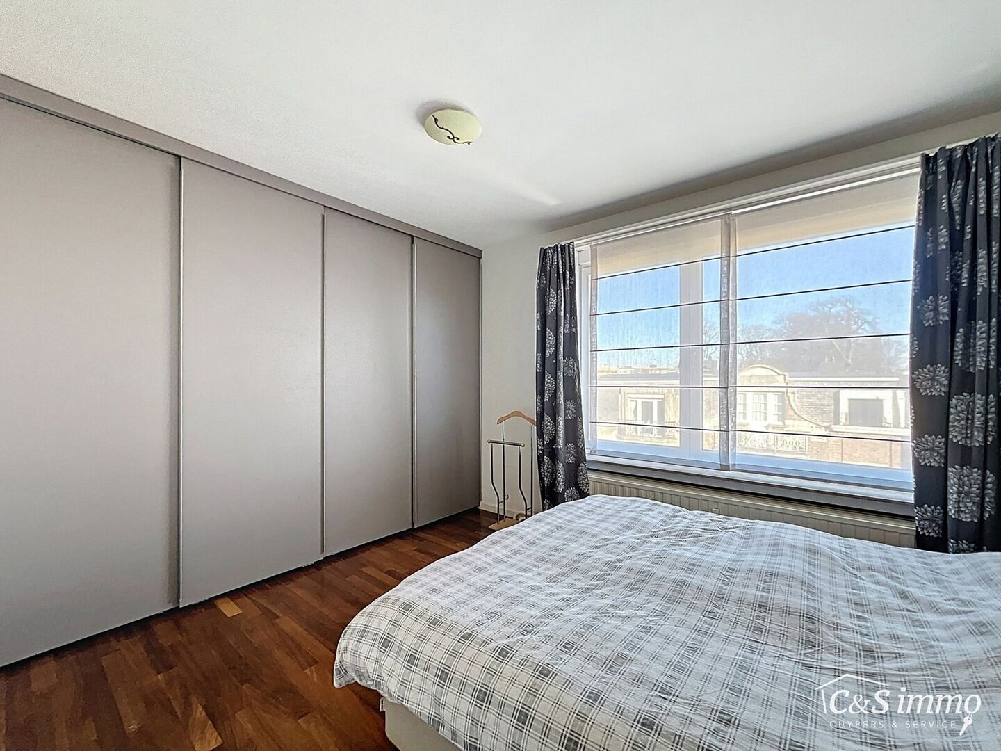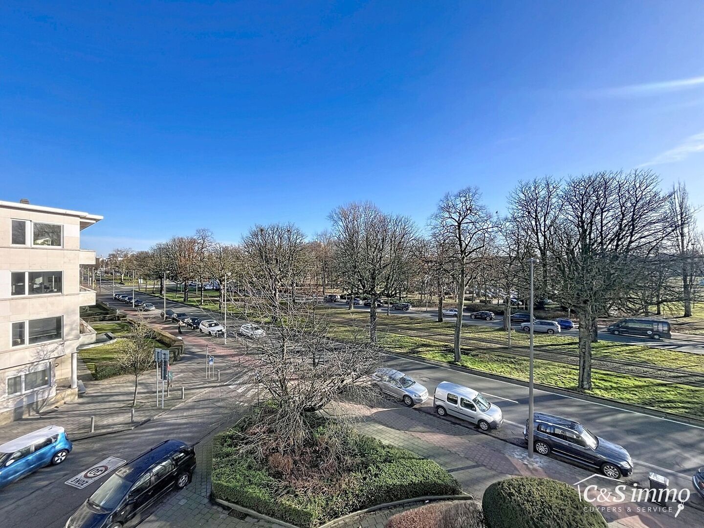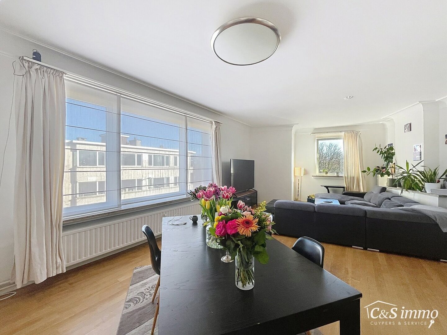Gelegen op de derde verdieping van een karaktervol vintagegebouw bevindt zich dit aangename appartement van ca. 107 m² met een ruim en zonnig terras van ca. 18 m², in de gegeerde Expowijk. Via de inkomhal met afzonderlijk toilet en praktische berging bereikt u de lichtrijke leefruimte (ca. 44 m²) op parketvloer, toegankelijk via een stijlvolle dubbele deur. De deels uitgeruste keuken geeft rechtstreeks uit op het nog aan te leggen, westgericht terras. Het appartement beschikt over twee slaapkamers (ca. 16 m² en 11 m²), waarvan de master bedroom is uitgerust met ingemaakte kasten. De badkamer is afgewerkt in mozaïek en voorzien van een ligbad, aparte douche, dubbel lavabomeubel en aansluiting voor wasmachine. Verder is het appartement uitgerust met een recente boiler en dubbele beglazing, en beschikt het over een privatieve kelderberging. In het gebouw werden recent zowel het dak als de gevel vernieuwd. de lift is conform de huidige normen.