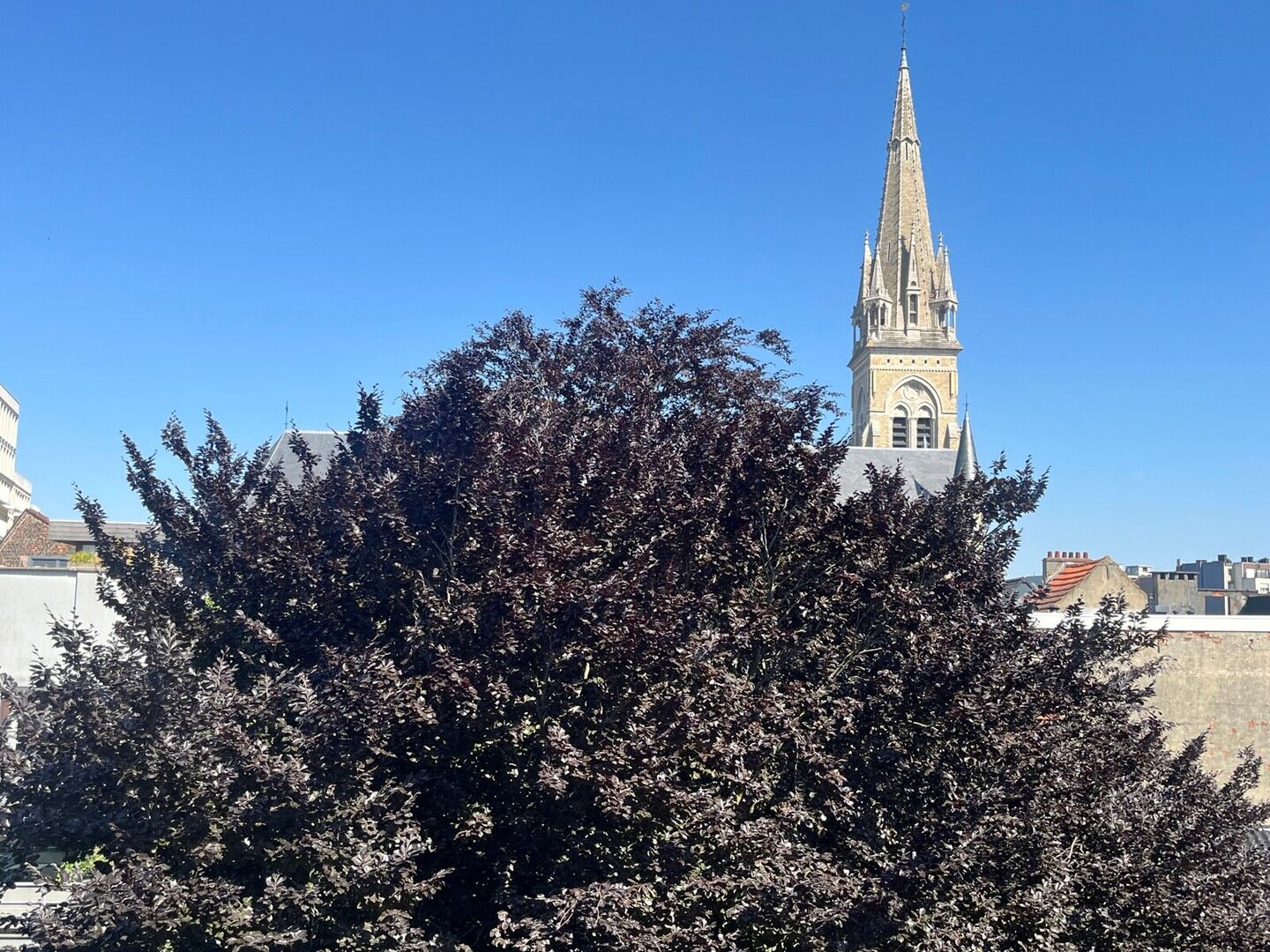 Een absolute meerwaarde is het ruime gemeenschappelijke dakterras van maar liefst 70 m². Een heerlijke plek om te ontspannen in de zon en te genieten van het uitzicht op de Sint-Antonius van Padua-kerk. Het gebouw is bovendien uitgerust met een lift.