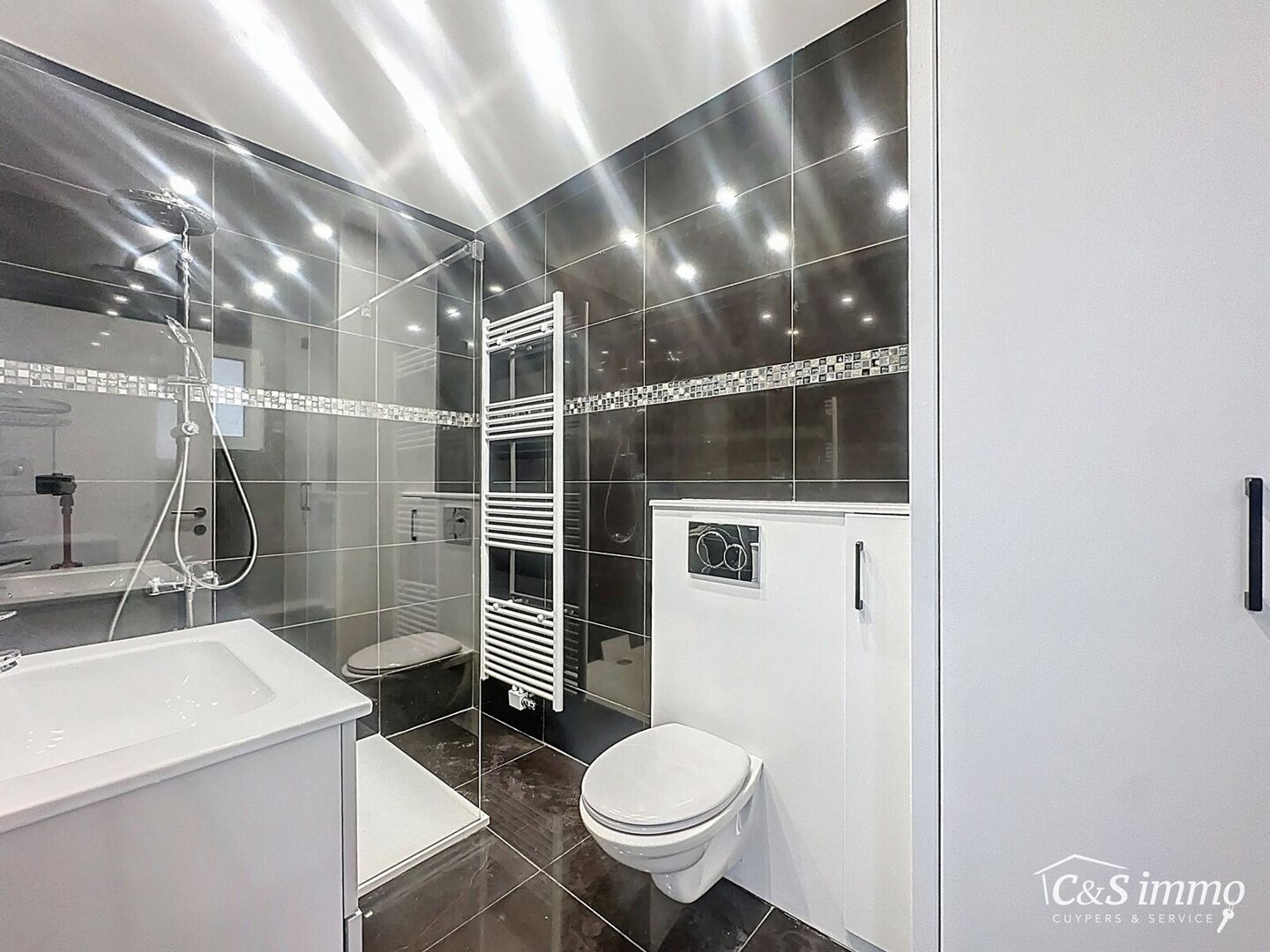 De woning beschikt over twee moderne badkamers – één op het gelijkvloers en één op de eerste verdieping – beide voorzien van een inloopdouche en een stijlvolle afwerking. Tussenverdieping van maar liefst 23m² die je ook als extra slaapkamer, zitruimte of extra werkruimte gebruikt kan worden. Verder zijn er drie slaapkamers van respectievelijk 24 m², 16 m² en 10 m², wat deze woning bijzonder geschikt maakt voor gezinnen of wie graag extra ruimte heeft.