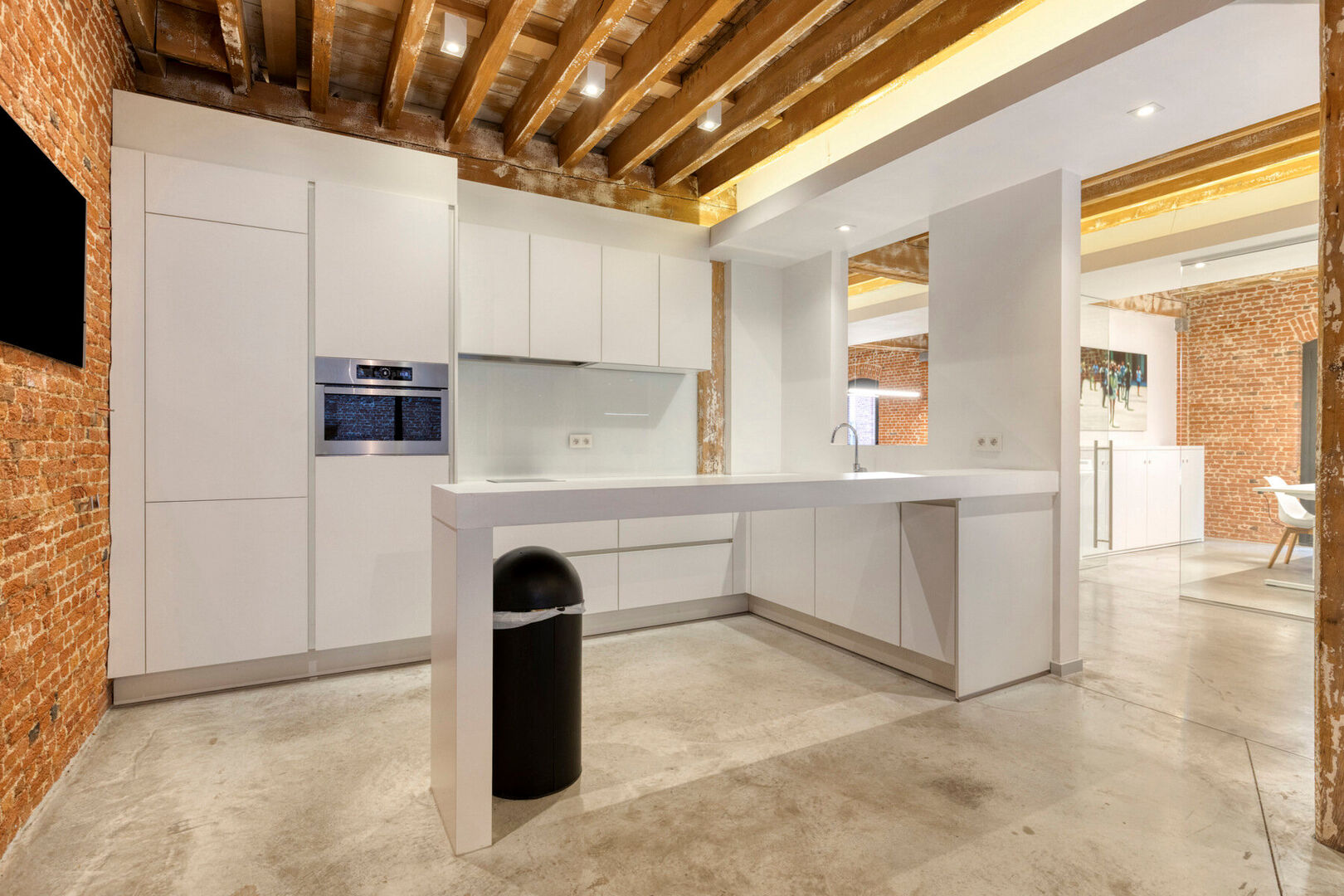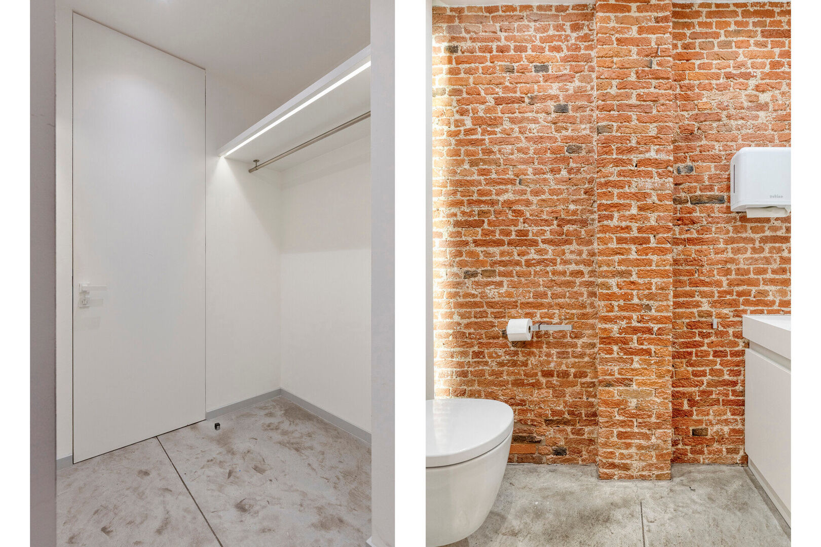 De afwerking is tot in de kleinste details verzorgd en biedt alle hedendaags comfort. Gepolierde betonvloeren, grote glaspartijen en authentieke houten balkstructuren zorgen samen voor een uitgesproken karaktervol en industrieel geheel. Bovendien is de volledige ruimte uitgerust met hoogwaardig ingebouwd maatwerk.
